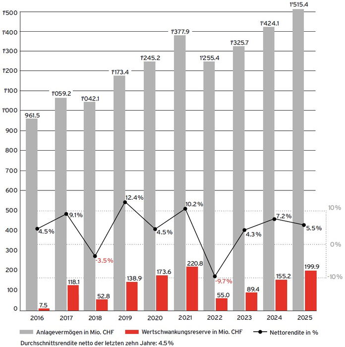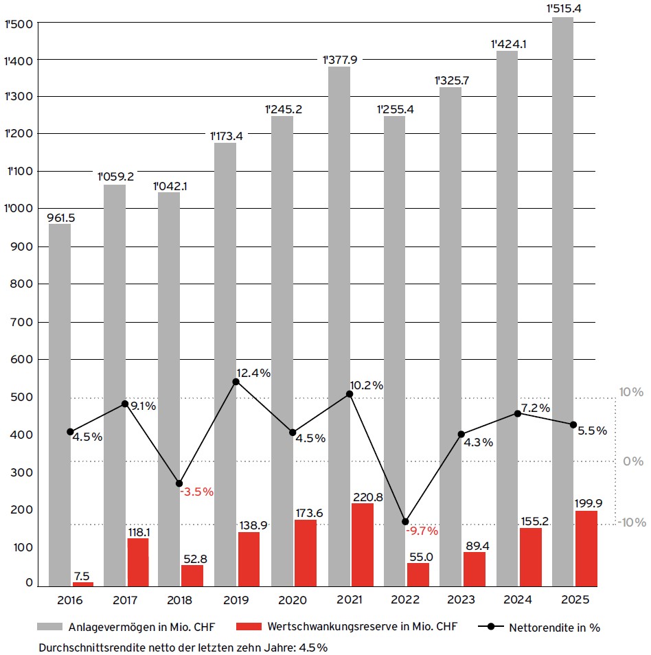 Die Wertschwankungsreserve dient dazu, ungünstige Entwicklungen an den Finanz- und Kapitalmärkten für die Vorsorgeeinrichtung abzufedern. Sie wird in weniger ertragreichen Perioden auf den Kapitalmärkten verwendet, um die Leistungen erbringen zu können, und in guten Zeiten wieder geäufnet. Das Ziel besteht darin, die von den Vermögensanlagen ausgehenden Schwankungsrisiken auszugleichen und eine nachhaltige Erfüllung der Leistungsversprechen zu gewähren.